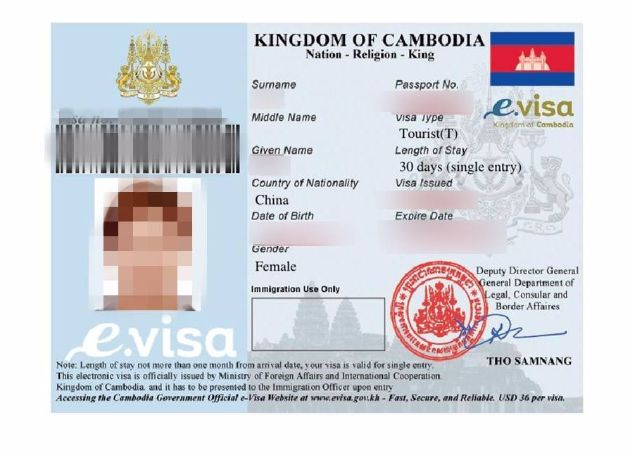 Print two (2) copies of the e-Visa certificate. Present one (1) copy to immigration upon your arrival in Cambodia and retain the second copy for departure.